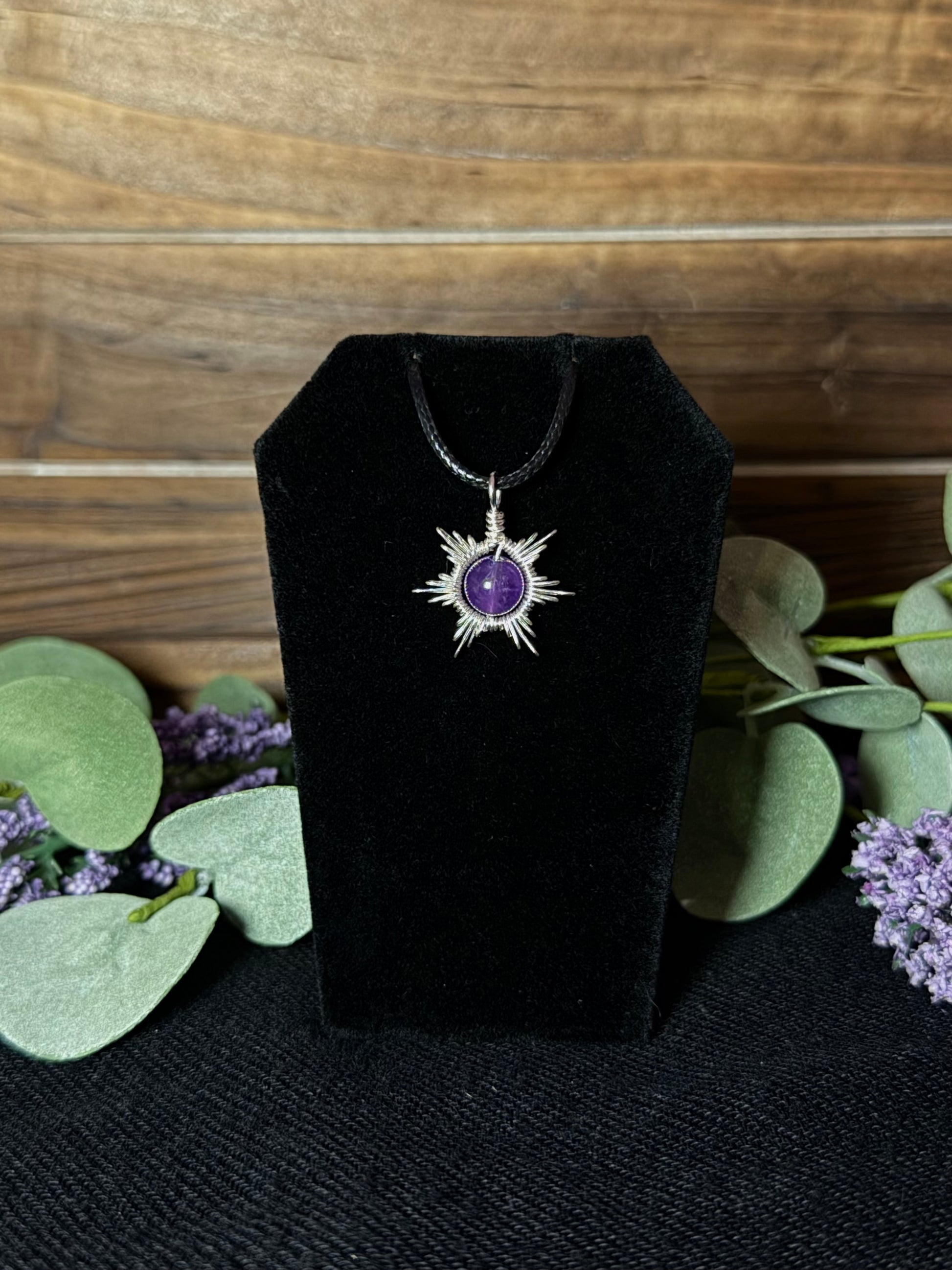 Amethyst Star/Snowflake Wire-Wrapped Pendant